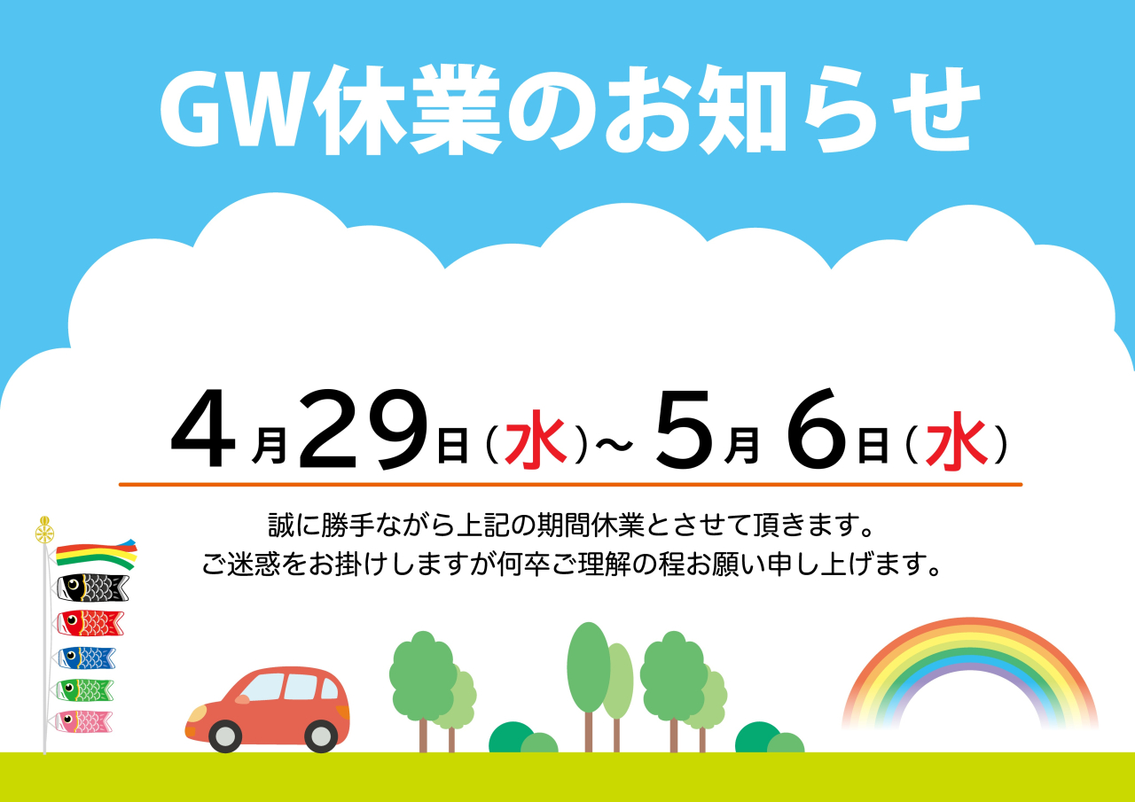 誠に勝手ながら4/29(水・祝)~5/6(水・祝)の間、休業とさせていただきます。