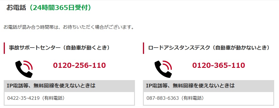 ご連絡先は下記のお問い合わせ窓口となります。また保険事故に関する照会については、下記お問い合わせ窓口のほか、保険証券記載の保険会社の事故相談窓口にもお問い合わせいただくことができます。
